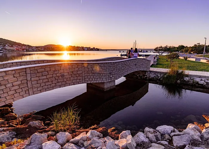 Cirka 10 minuters bilresa från i den här strandnära lägenheten hittar du Šibenik-bron. 8 km från den strandnära lägenheten hittar du Baronefästningen.